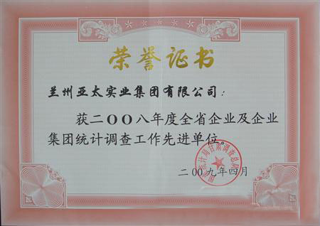 esball集团被国家统计局甘肃视察总队评为2008年统计视察先进单位
