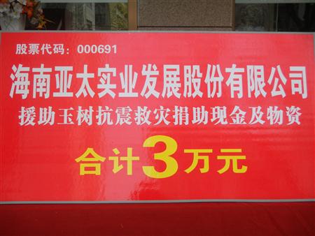 海南esball实业股份公司援助玉树抗震救灾